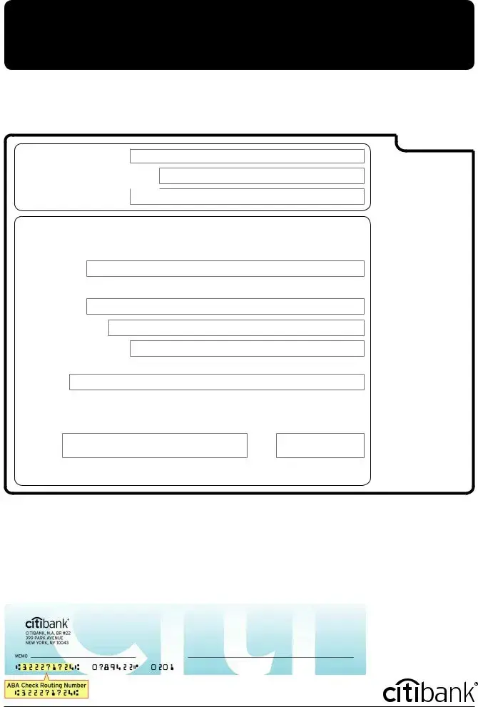 The Payroll Direct Deposit Authorization form found in many organizations also mirrors the Citibank Direct Deposit form. It is a document that employees fill out to allow their paycheck to be directly deposited into their specified bank account. Like the Citibank form, it gathers banking details and personal identification to automate the payroll process, highlighting a shared goal of streamlining financial transactions for both employer and employee.